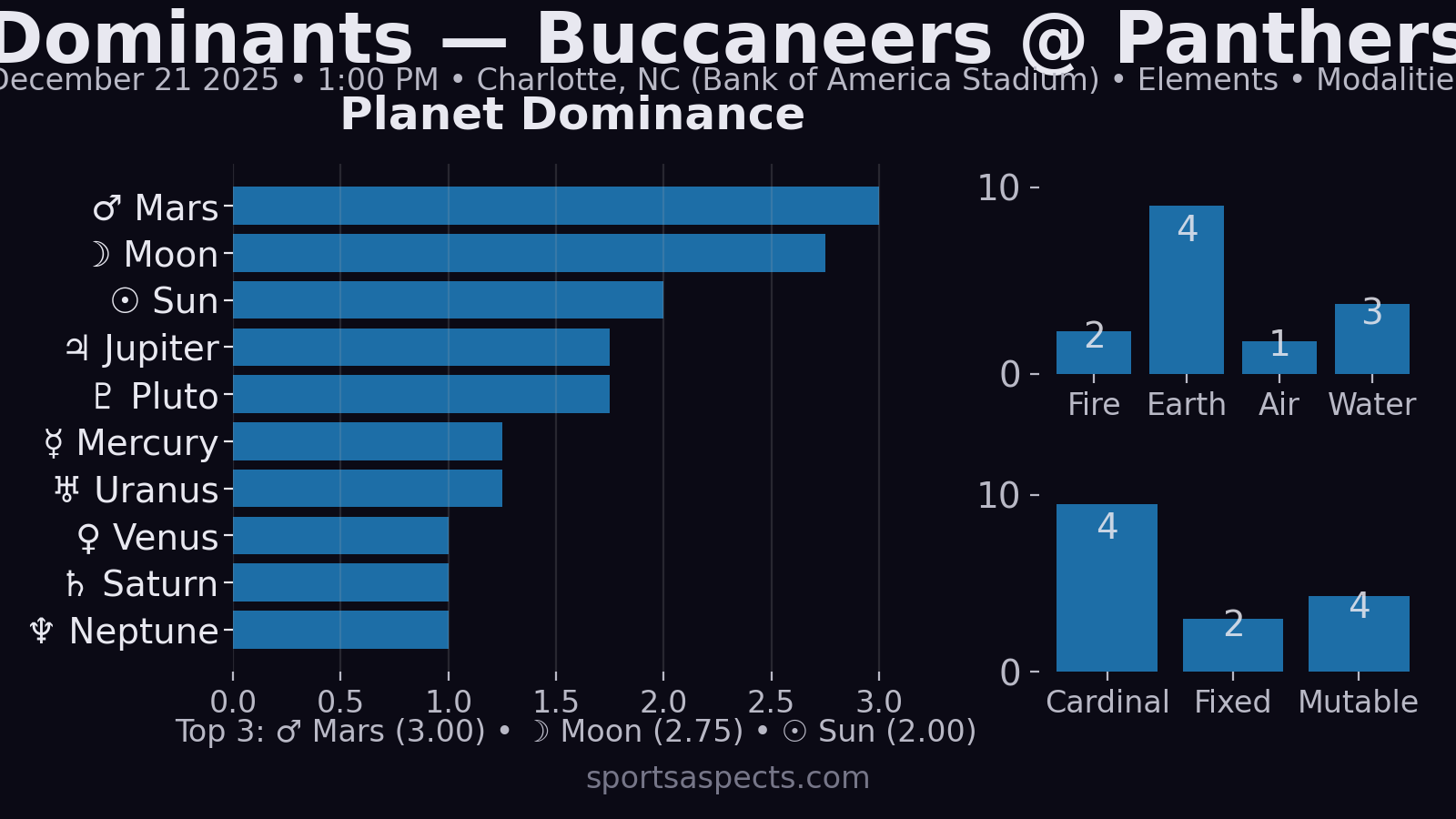 → physical, results-driven football; fewer “pure finesse” stretches. - Modalities: Cardinal 4, Mutable 4, Fixed 2