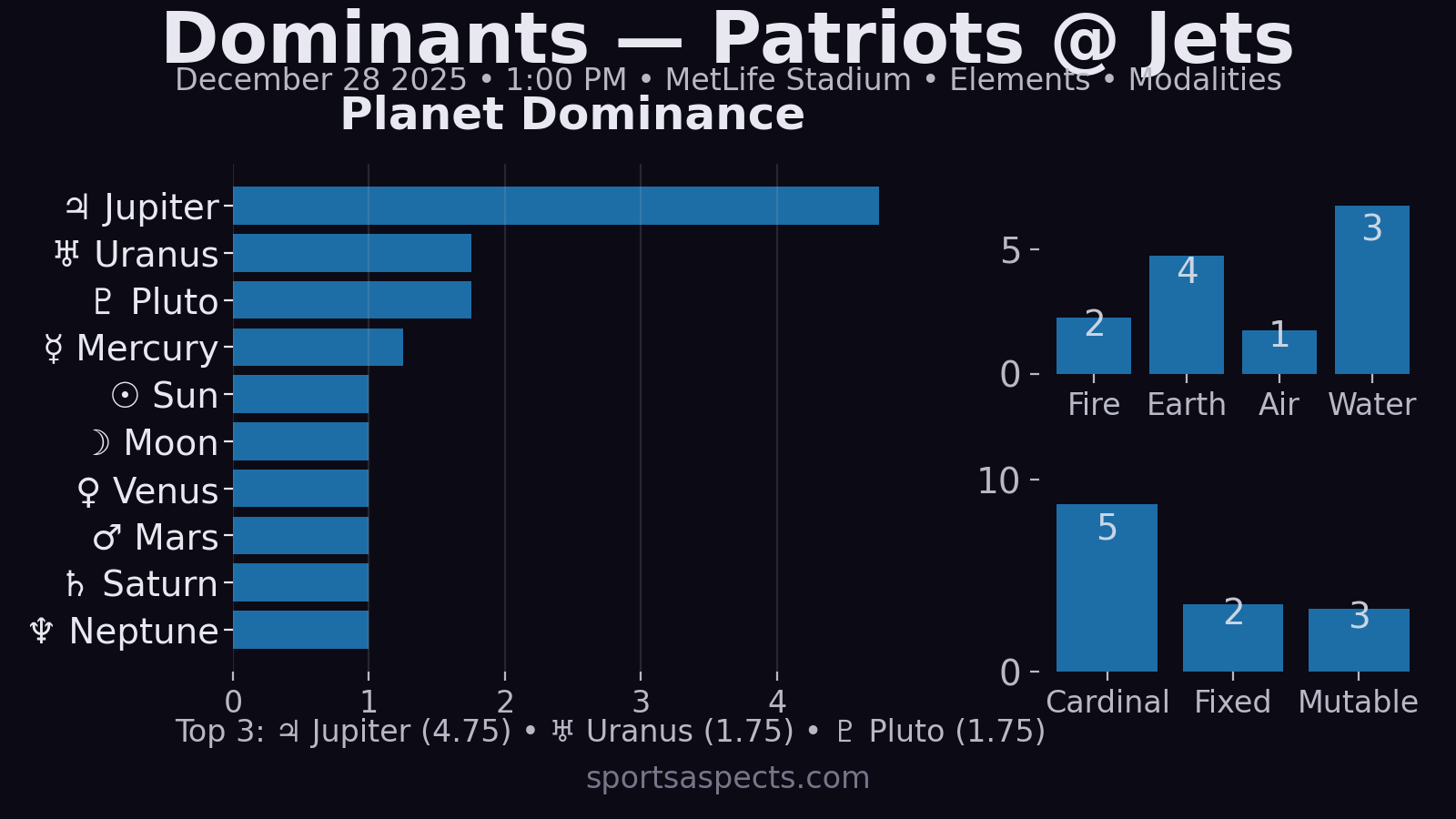 2025-12-28 Patriots @ Jets — Kickoff astrology chart analysis