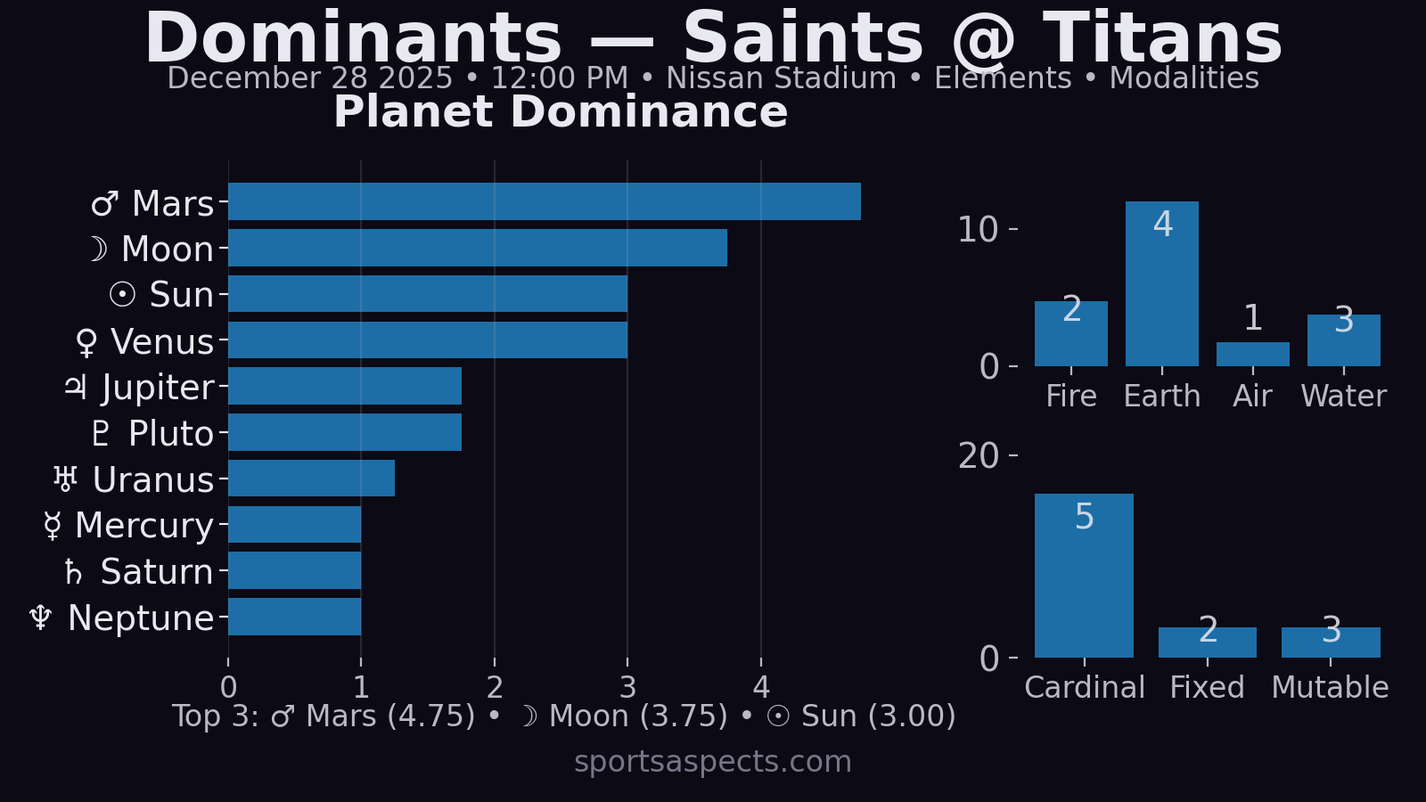 2025-12-28 Saints @ Titans — Kickoff astrology chart analysis