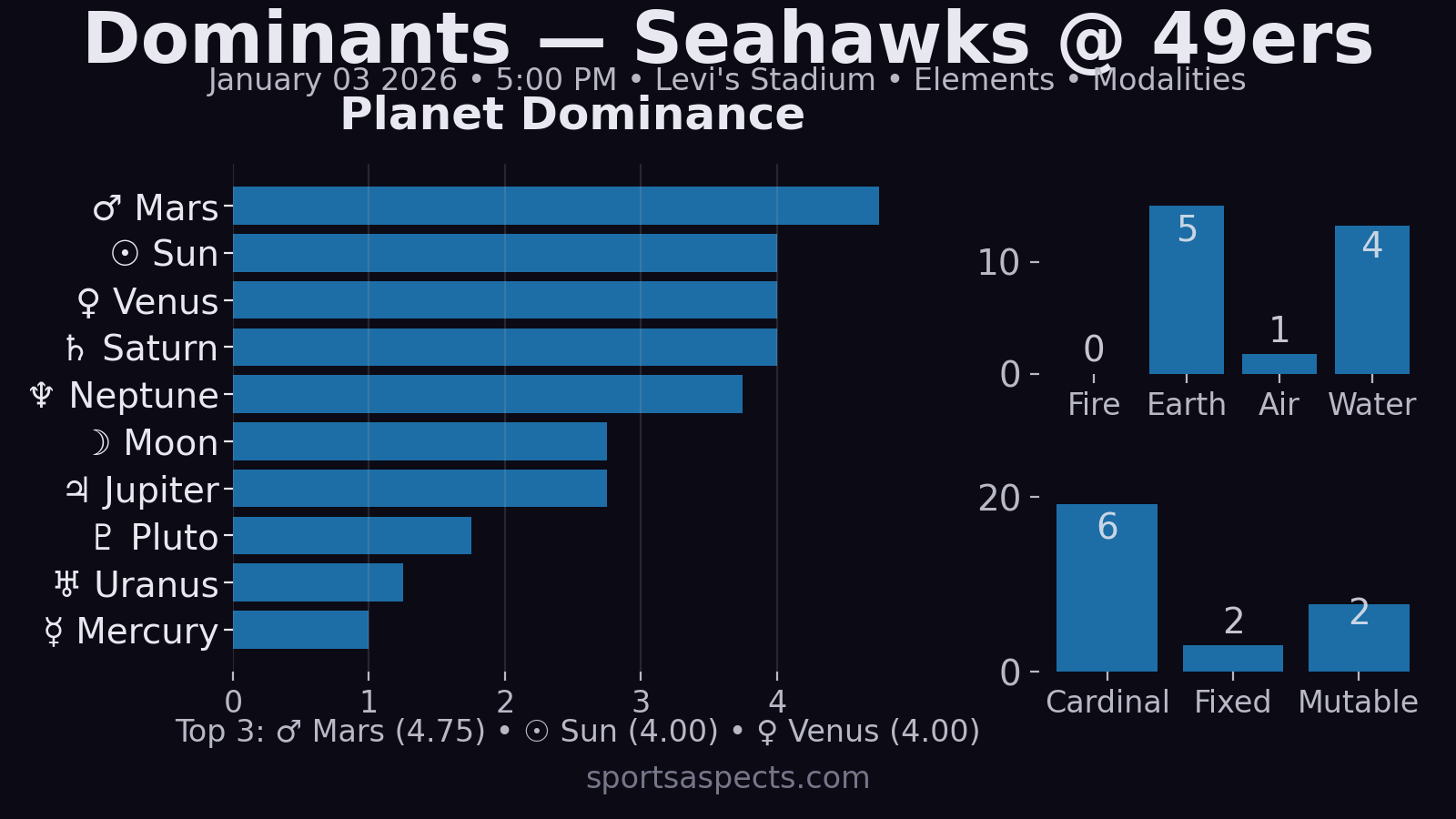 - DSC ruler Saturn (H10) on MC: Seahawks get the cleanest outcome signature—the team most able to stay rigid and execute late.