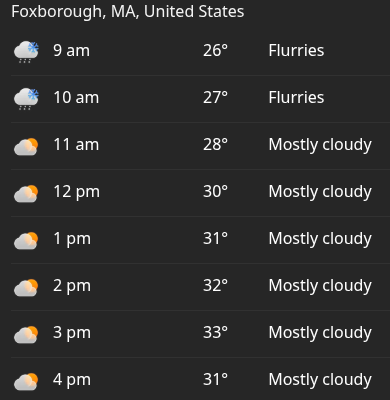 Weather note: Flurries early, mostly cloudy near kickoff; ~31°F around 4–5pm