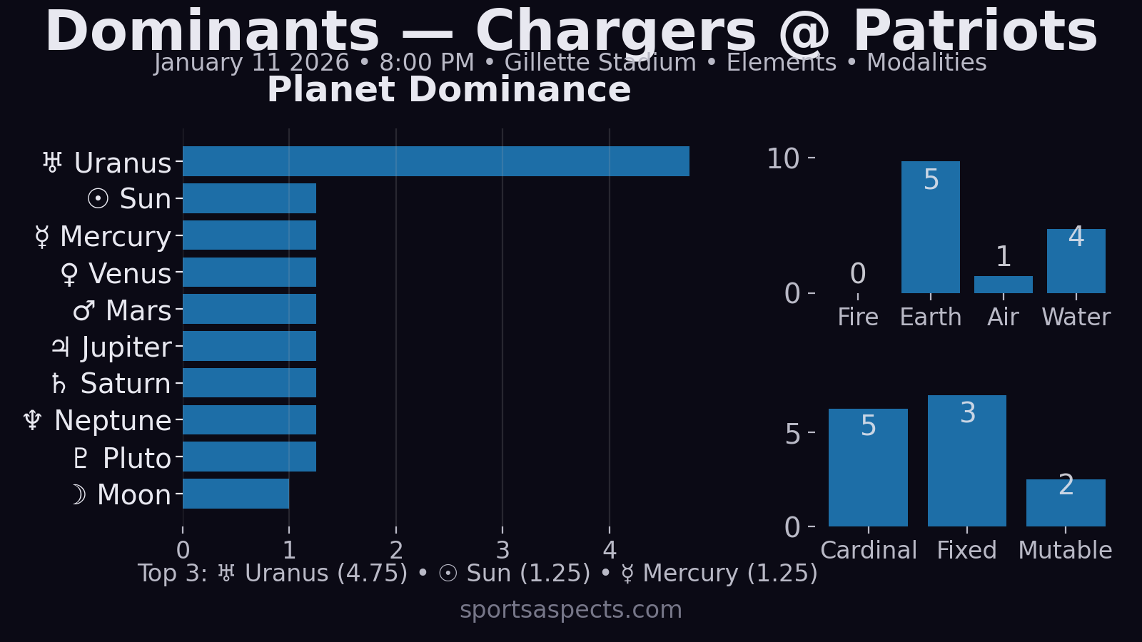 Chargers @ Patriots — Kickoff astrology chart analysis