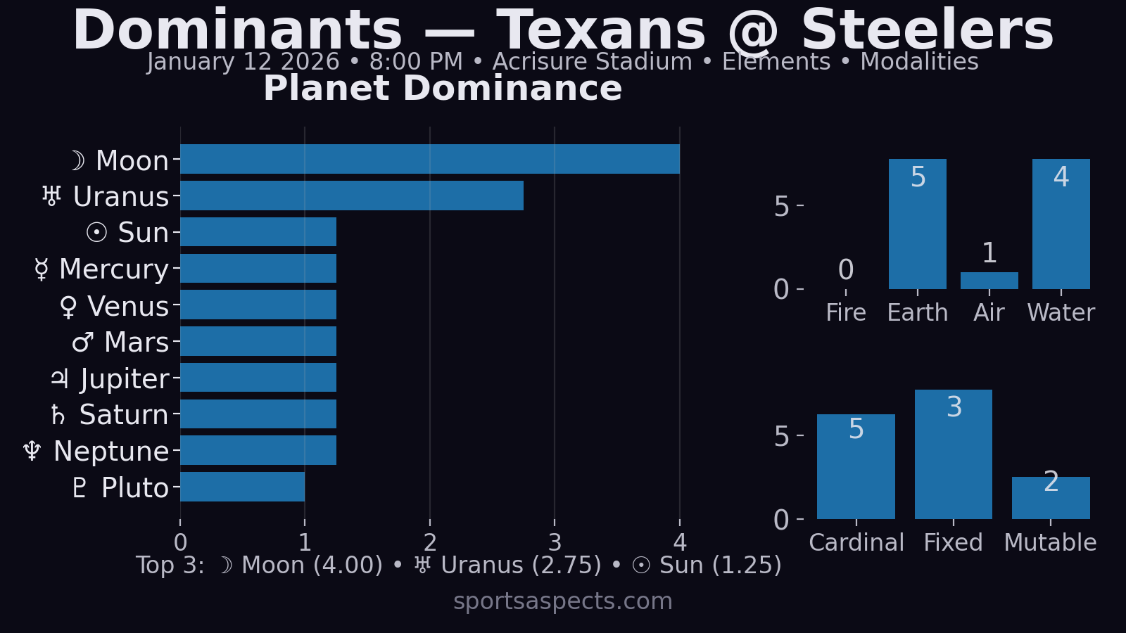 - If Steelers look calm + efficient early: chart favors a Pittsburgh-style closeout (Capricorn machine + Moon/IC crowd wave).